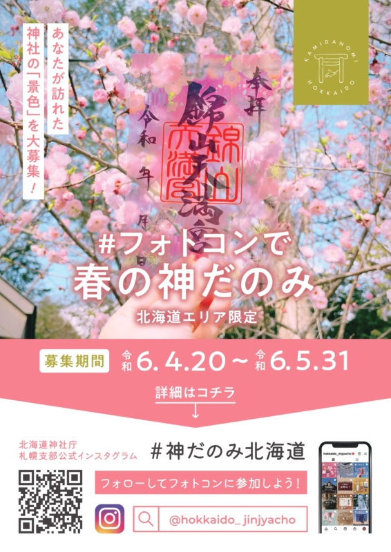 インスタグラム @hokkaido_jinjyacho をフォロー #フォトコンで春の神だのみ #(撮影した神社の名前) をつけて投稿するだけです。